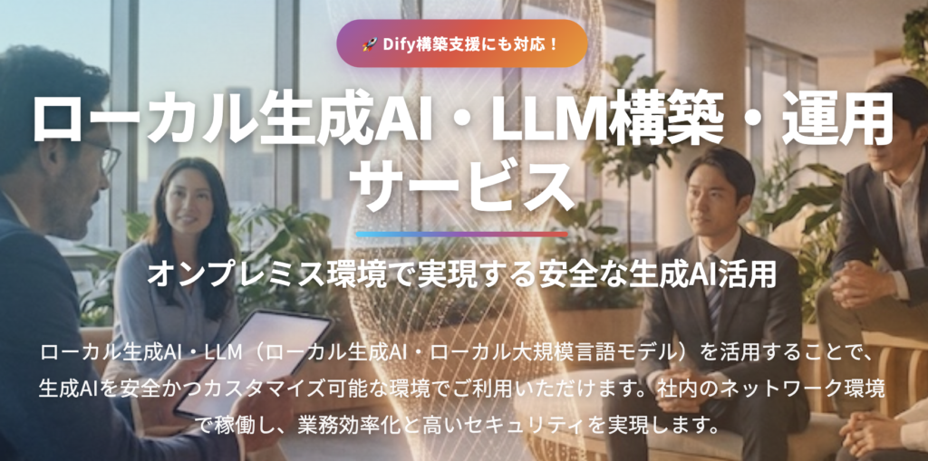 企業・自治体・各種団体向けに、生成AI(ChatGPT・Dall-E・Azure OpenAI Services・Anthropic Claude、Google Gemini等)を活用したシステムやWEBサイト、WEBサービスを開発提供するサービスです。