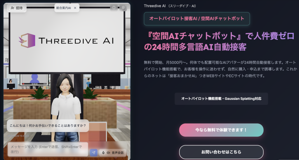 「Threedive AI」は、空間AIチャットボット/AIメタバースです。
